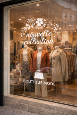 - Habillage complet ou partiel de vitrine avec visuels ou motifs décoratifs